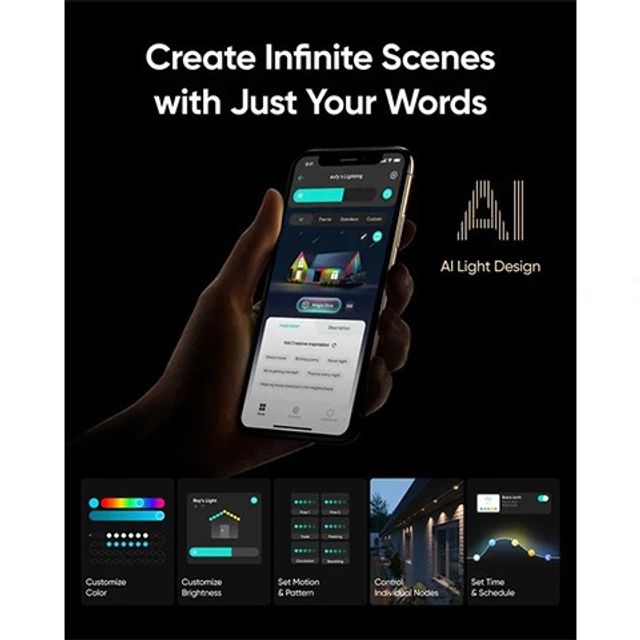 Have complete control at your fingertips with our intuitive smartphone app. Illuminate your home with a touch, switch between a spectrum of vibrant colors, and set timers to sync with the rhythm of day and night. Your holidays have never been brighter.
